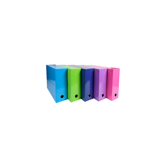 Scatole progetto in carta lustré plastificate per una migliore resistenza. Disponibili in 5 colori assortiti. Occhiello per facilitare la presa. Formato 25x33cm.