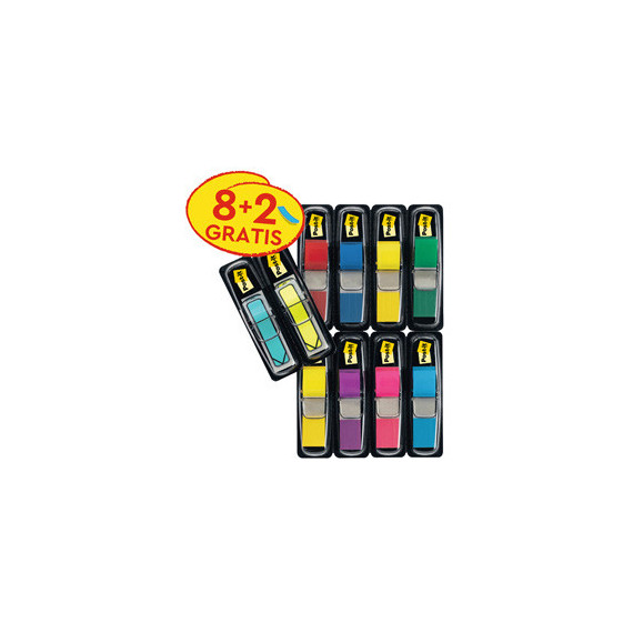 Segnapagina Post-it® Index, Piccolo, Colori Assortiti, 11.9 mm x 43.2 mm, Pacchetto Promozionale + Segnapagina Post-it® Index Freccia, Blu e Giallo, 11.9 mm x 43.2 mm, 8 Dispenser + 2 Gratis Con i segnapagina Post-it® Index puoi facilmente evidenziare le informazioni importanti. Si attaccano in modo sicuro, si rimuovono senza lasciare residui e sono disponibili in vari colori. Usali a casa, in ufficio o a scuola per evidenziare elementi importanti, indicizzare, archiviare o codificare a colori il tuo lavoro.