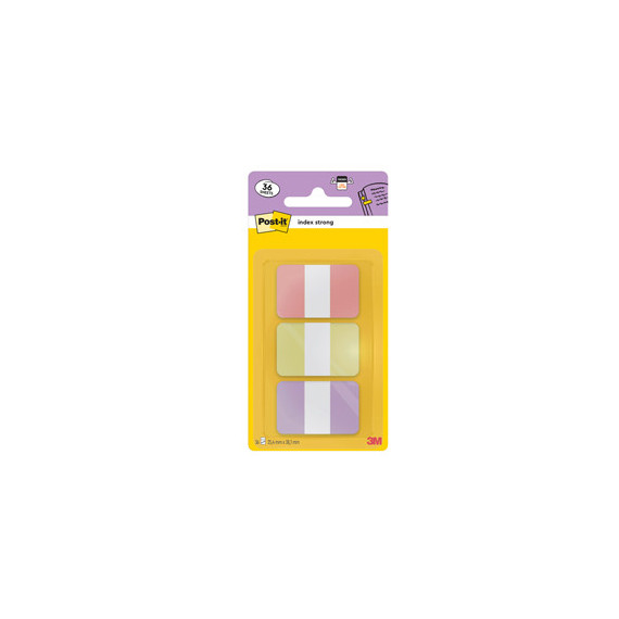 Segnapagina Post-it® Index Strong 686-3COAST, Azzurro pastello, Viola e Verde, 25,4 mm x 38,1 mm,12 tab/dispenser,36 in totaleSegnapagina Post-it® Index Strong 686-3SUN, Rosa pastello, Giallo e Viola, 25,4 mm x 38,1 mm, 12 tab/dispenser, 36 in totale
