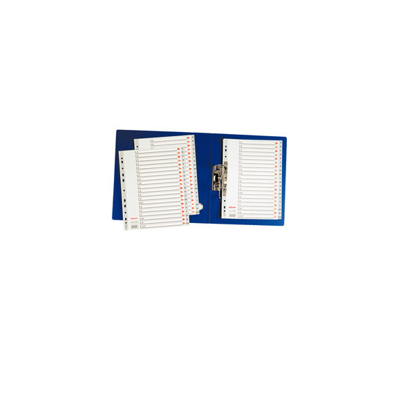 Separatori in PPL Esselte in PPL grigio da 115micron e tasti stampati. Indice frontale prestampato in cartoncino. Foratura universale.