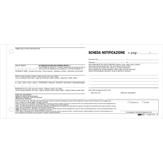 SCHEDE DI NOTIFICA. Formato 10x22cm. Snap. 2 copie ric.