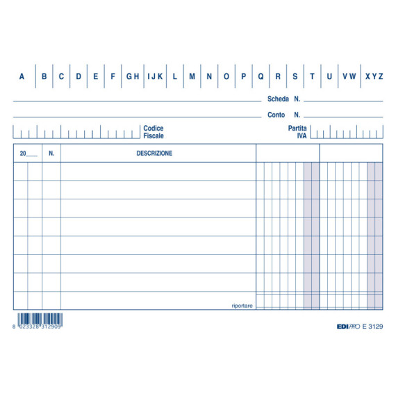100 schede in cartoncino da 170gr. Formato 10,5 x 15cm orizzontale. 2 colonne.