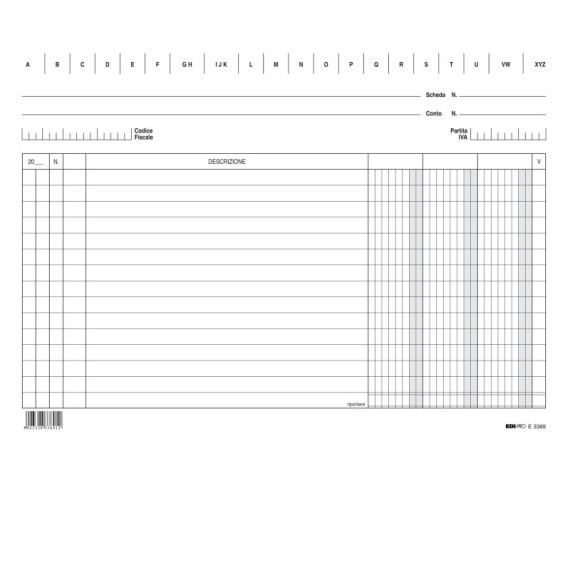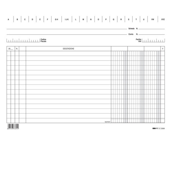 100 schede in cartoncino da 170gr. Formato 17 x 24cm orizzontale. 3 colonne.