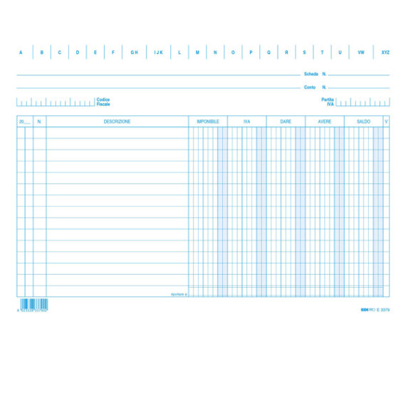 Schede dare/avere/saldo/iva - 17 x 24 cm (orizzontale) - Edipro - conf. 100 pezzi