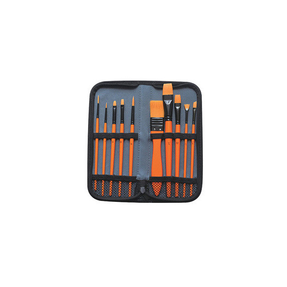 Set 10 pennelli assortiti, per acrilico. Astuccio zip perfetto per i viaggi, aiuta a conservare meglio i pennelli.