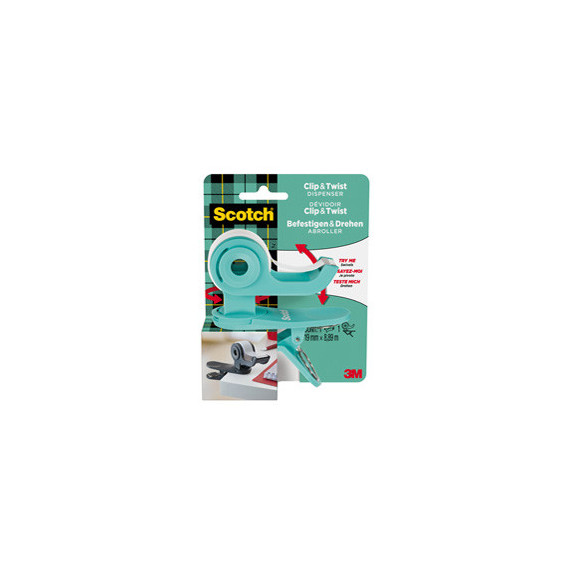 Dispenser Clip & Twist - per nastri 33 m - rotolo da 1,9 cm x 9,8 m incluso - menta - Scotch