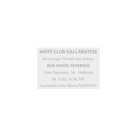 Personalizzabile su 9 righe con logo, indirizzo o altro testo. Area stampa 40x60mm.