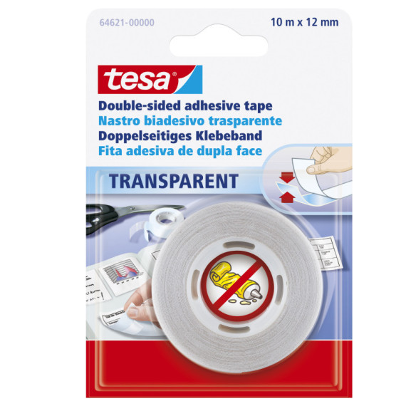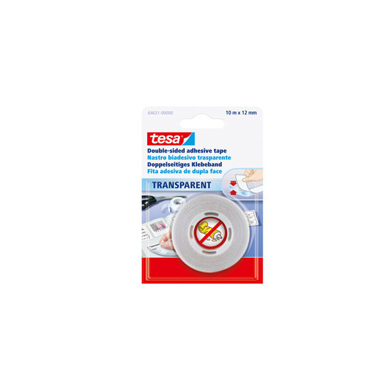Nastro biadesivo - 12 mm x 10 m - PP - trasparente - Tesa