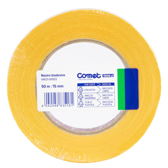 Nastro biadesivo - 15 mm x 50 m - PP - trasparente - Comet