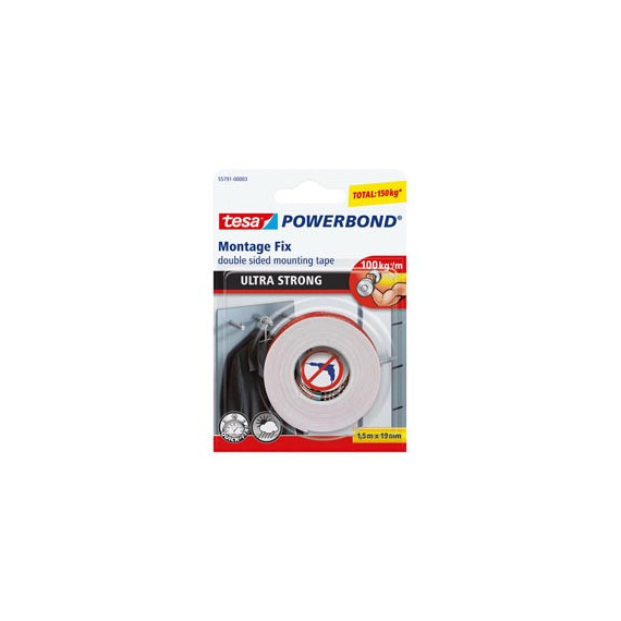 Nastro biadesivo per fissaggio a tenuta extra-forte ed istantanea sui muri senza l’utilizzo di nessun altro strumento. Regge fino a 10kg per 10cm di nastro. Ideale per utilizzi in interni.