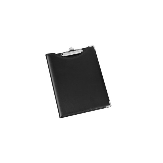 Portablocco in ecopelle 24x31 cm con patella portadocumenti, portapenne, bloccafogli in metallo e paraspigoli in metallo cromato.Formato interno 24x31cm. Colore: nero.
