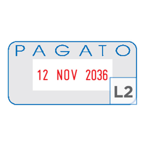 Timbro S260/L2 Datario + PAGATO - 4 mm - autoinchiostrante - bicolore - Colop