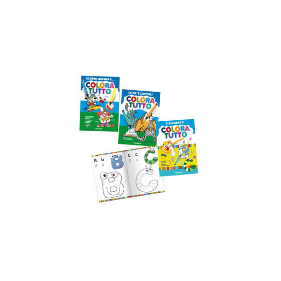 Album da colorare - 24 facciate - per bimbo - fantasie alfabeto, bimbi, capitali - Blasetti