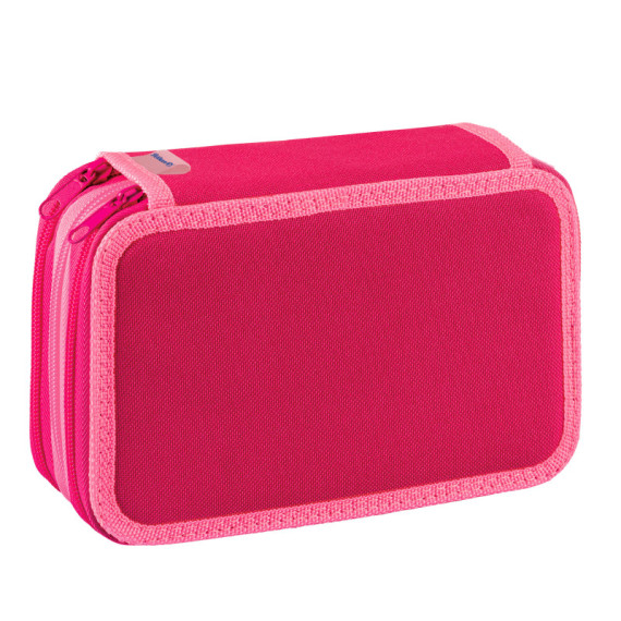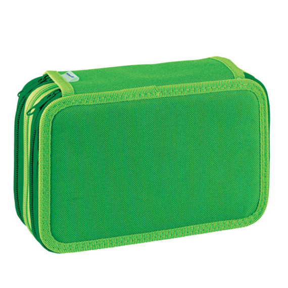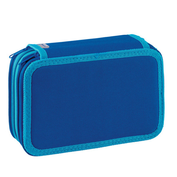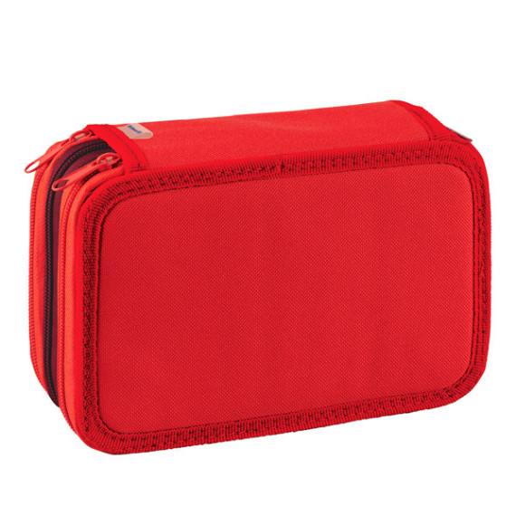 Astuccio a 3 scomparti in tessuto colorato dotato di zip con verso di apertura alternato. Corredato di tutto il materiale necessario per la scuola a marchio Pelikan: 18 matite colorate, 18 pennarelli Colorella Star, 2 penne a sfera Hang stick, 1 matita HB, 1 righello flessibile, 1 forbice, 1 gomma AL30, 1 temperamatite in metallo. Assortimento in 6 colori assortiti in un pratico display da banco