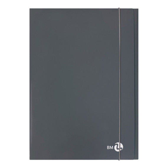 Cartella 3 lembi con elastico - A4 - dorso piatto - grigio scuro - BM