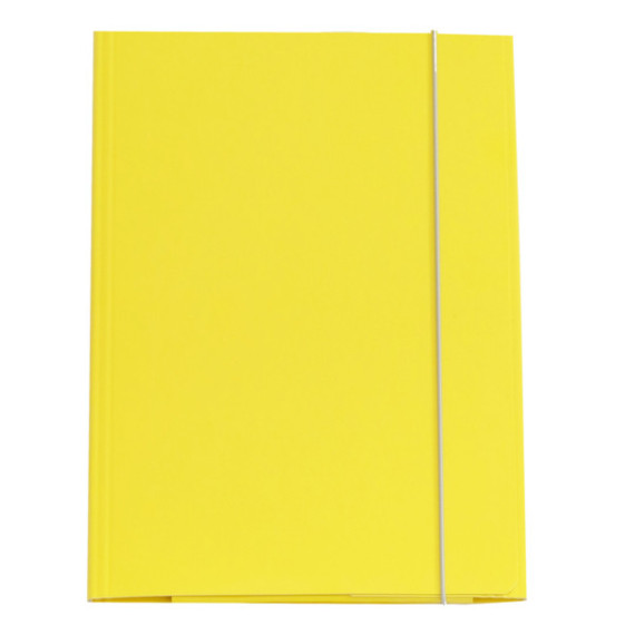 Cartella 3 lembi con elastico in cartone plastificato dai colori brillanti con alette e chiusura ad elastico tubolare grigio chiaro. Formato utile 25x34cm