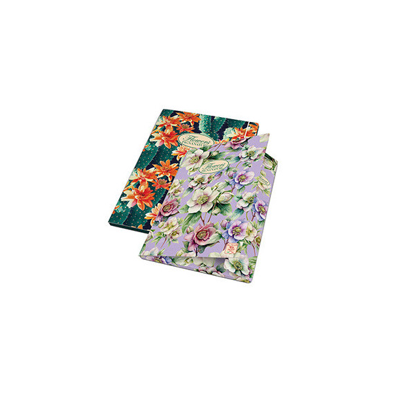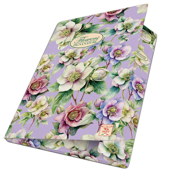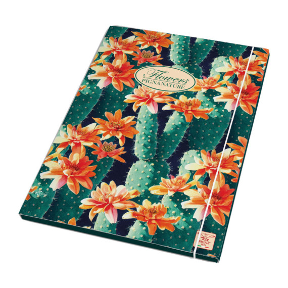 CARTELLINA A 3 LEMBI CON ELASTICO LINEA PIGNA NATURE FLOWERS. STRUTTURA IN CARTONE RIVESTITO CON CARTA USO MANO STAMPATA A MOTIVI FLOREALI. DIMENSIONI: 26X35,5X1,2CM.