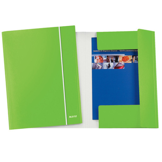 Cartella 3 lembi con elastico WOW - 25 x 35 cm - dorso variabile - cartoncino plastificato - verde lime - Leitz
