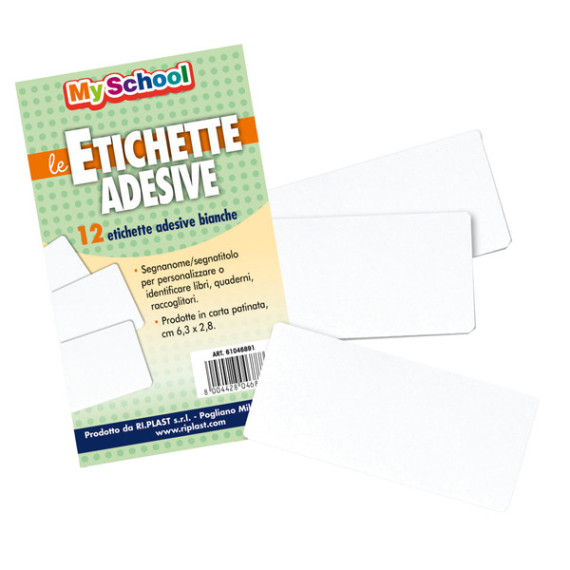 Segnanomi/segnatitoli per personalizzare o identifi care libri, quaderni e raccoglitori. Realizzate in carta patinata. Busta da 12 etichette bianche. Misure: 6,3 x 2,8cm.