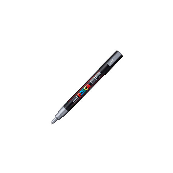 Marcatore a base d'acqua Uni Posca PC3M - punta fine da 0,9mm a 1,3mm - argento - Uni Mitsubishi