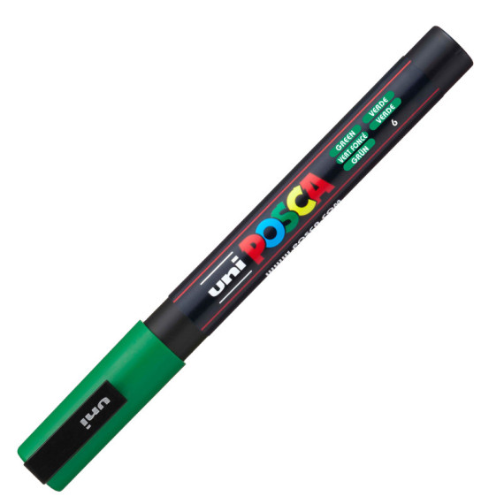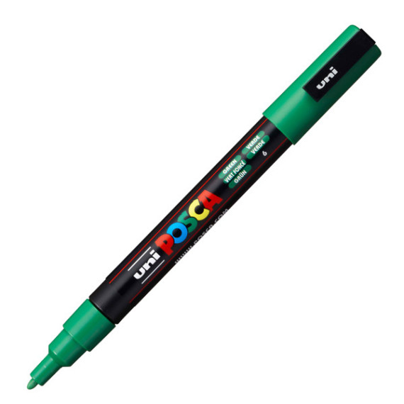 Marcatore a base d'acqua Uni Posca PC3M - punta fine da 0,9mm a 1,3mm - verde - Uni Mitsubishi