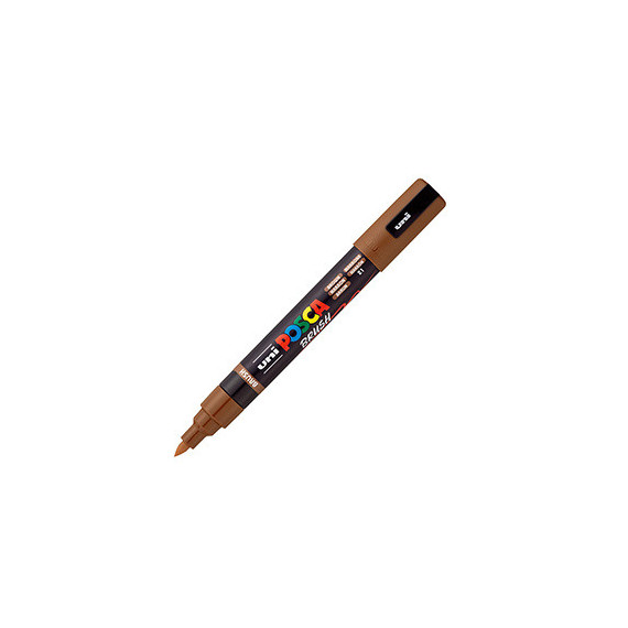 Marcatore a base d'acqua Uni Posca PC5MBR - punta brush 1.0 - 4.0mm - marrone - Uni Mitsubishi