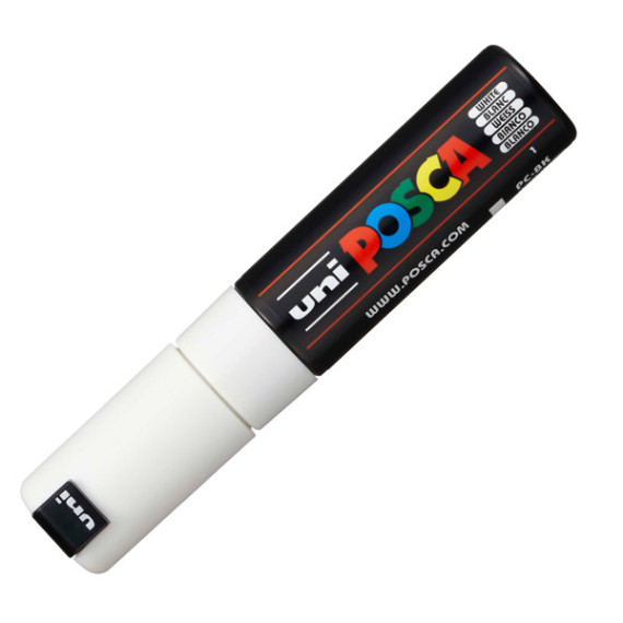 Marcatore a base d'acqua Uni Posca PC8K - punta large a scalpello 8,0mm - bianco - Uni Mitsubishi