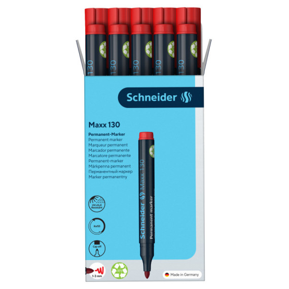 Marcatore permanente Maxx 130 - punta conica - Tratto 1,00-3,00mm - rosso - Schneider