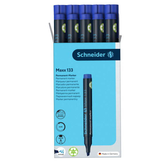 Marcatore permanente Maxx 133 - punta a scalpello - tratto da 1,00-4,00mm - blu - Schneider
