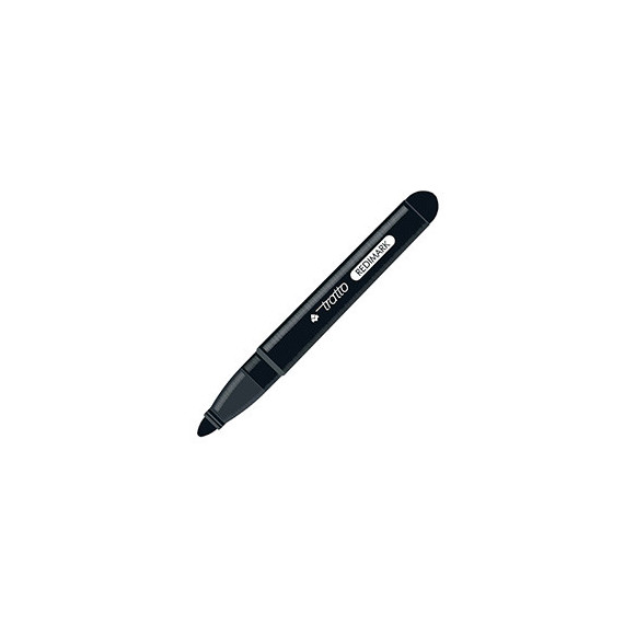 Inchiostro permanente a base d'alcool per tutte le superfici. Design innovativo. Fusto in plastica. Cappuccio brevettato per un'apertura facilitata. Made in Italy. Punta 3,5mm-tonda. Colore: nero.