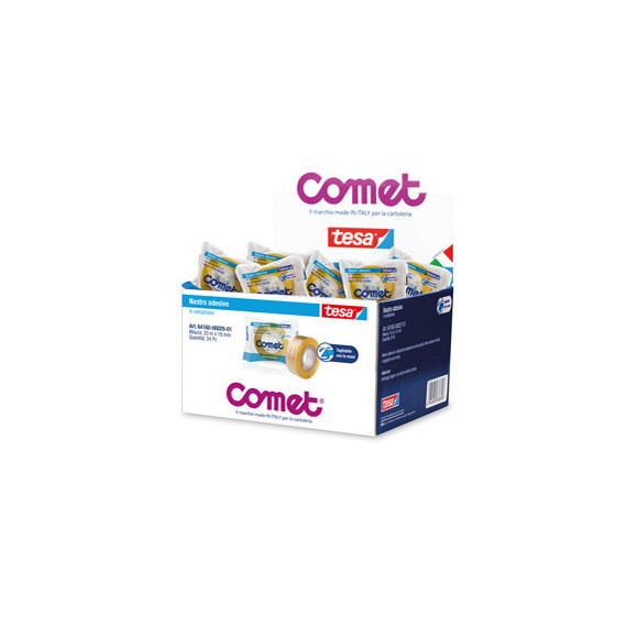 Nastro adesivo - confezionato singolarmente - 19 mm x 33 m - cellophane - trasparente - Comet