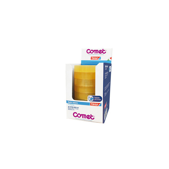 Nastro adesivo - confezionato singolarmente - 19 mm x 66 m - cellophane - trasparente - Comet
