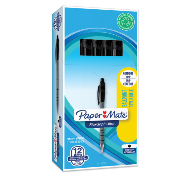 Penna a sfera a scatto Flexgrip Ultra - punta 1 mm - nero - Papermate