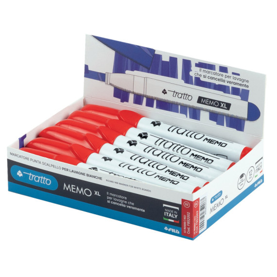 Pennarello Tratto Memo - a secco - per lavagne cancellabili - punta a scalpello - tratto 6,5mm - rosso - Tratto
