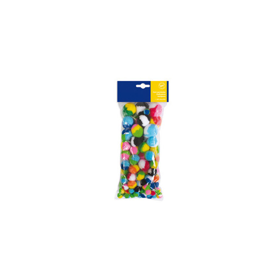 Pompon a strisce - 10-35 mm - colori assortiti - DECO - busta 100 pezzi