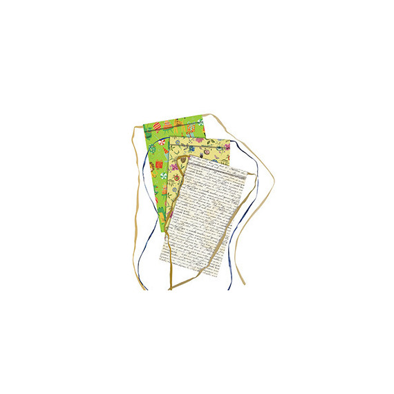 Buste in carta grazie alle quali è possibile confezionare in modo pratico e veloce qualsiasi tipo di oggetto. Il tutto senza l'utilizzo di forbici, nastro adesivo o altri strumenti. Fantasie assortite. Complete di nastro in rafia in tinta.