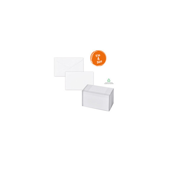 Scatola in acetato trasparente con 100 cartoncini bianco da 200gr liscio con 100 buste coordinate con patella e taglio a punta.Formato 4-75x112mm.