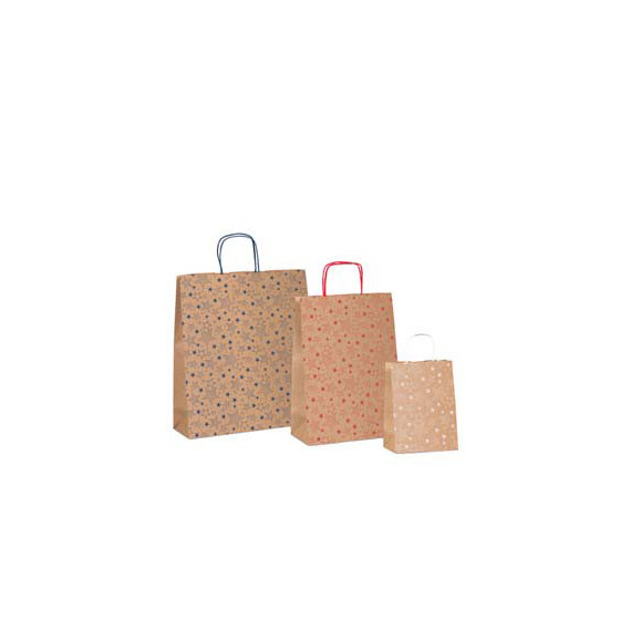Shopper natale - 36 x 12 x 41 cm - carta kraft - fantasia stelline - colori assortiti - Rex Sadoch