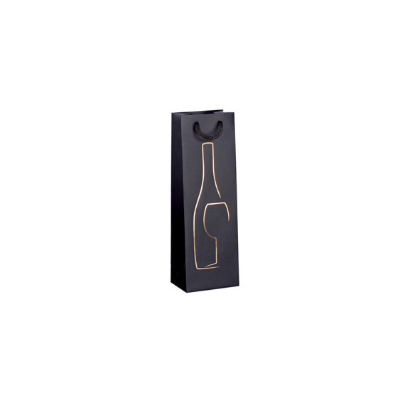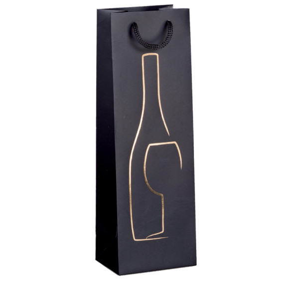 Shopper portabottiglie in carta patinata 190 g/m2. Dotato di manici in corda. Stampa oro a caldo.