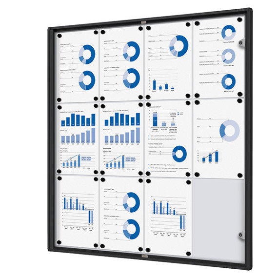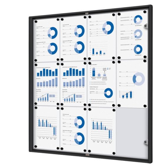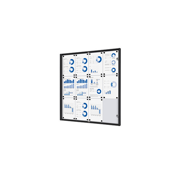Bacheca per interni - con ante battenti - 12 fogli A4 - cornice nera - verticale - Showdown