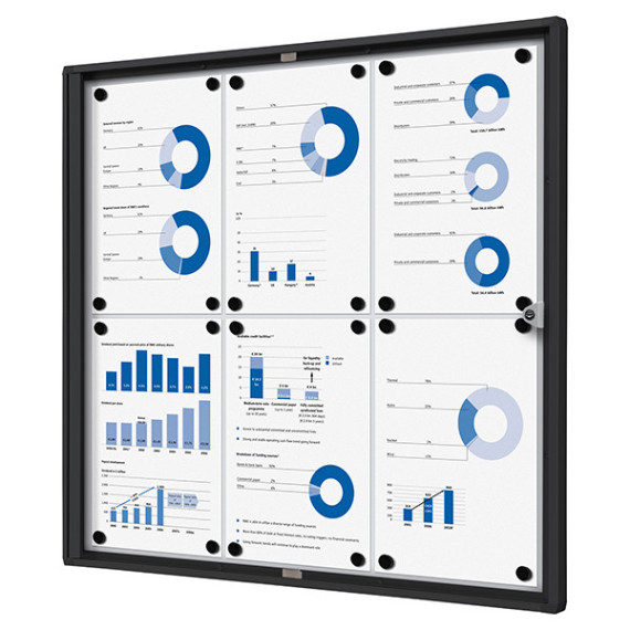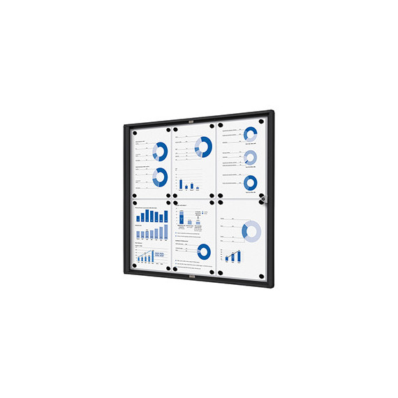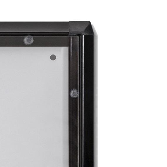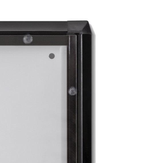 Bacheche per interni con cornice nera. Spessore 3mm e profondità interna di 12mm. Serratura a cilindro, con due chiavi in dotazione. Perfetta per uffici, scuole e spazi pubblici.