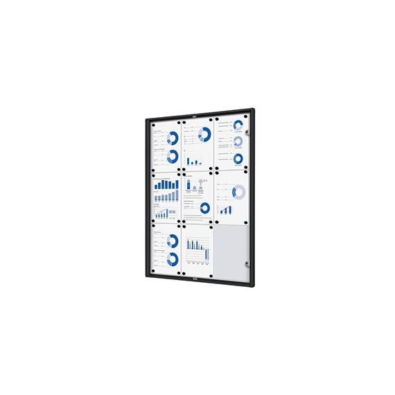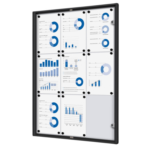 Bacheca per interni - con ante battenti - 9 fogli A4 - cornice nera - verticale - Showdown
