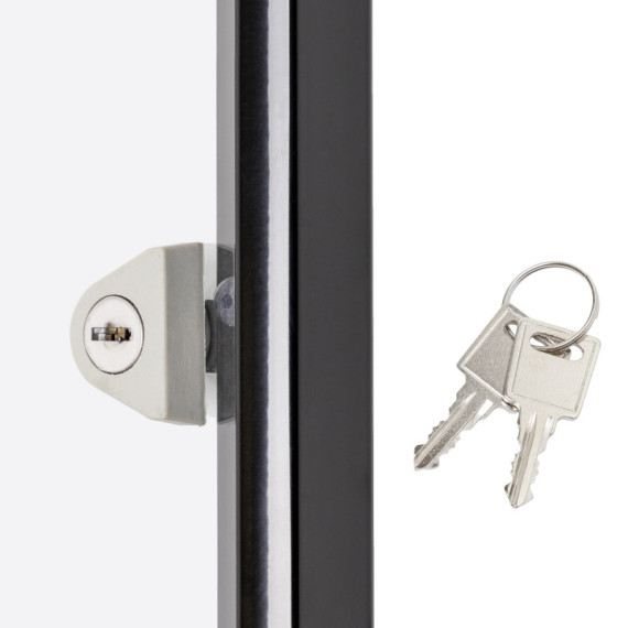 Bacheche per interni con cornice nera. Spessore 3mm e profondità interna di 12mm. Serratura a cilindro, con due chiavi in dotazione. Perfetta per uffici, scuole e spazi pubblici.