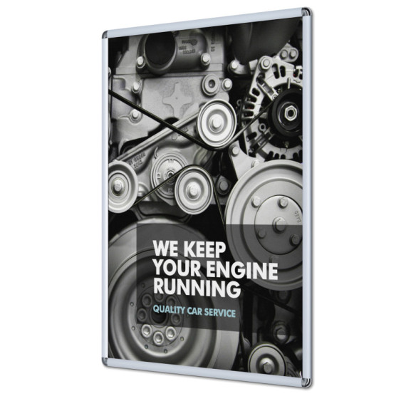 Cornici a scatto con angolo arrotondato e protezione antiriflesso in PVC. Fondo in materiale plastico PS. Tutte le cornici sono utilizzabili sia in orizzontale che verticale. Formato 50x70cm - profilo 25mm. Kit per fissaggio a muro non fornito.
