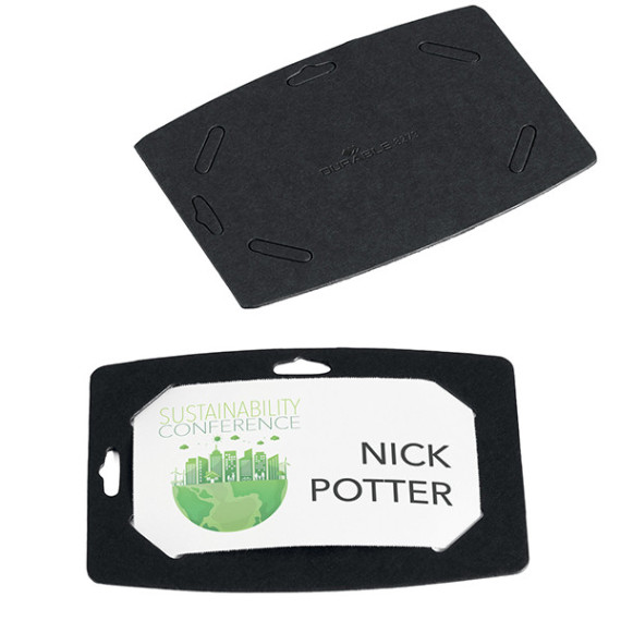 Portanome composto da supporto in cartoncino riciclato al 100% e da inserti personalizzabili, anch’essi in carta riciclata al 100%. I nostri portanome sostenibili sono ottimi come alternativa ecologica in occasione di eventi come fiere e mostre. Così facendo, dai un contributo prezioso alla tutela dell'ambiente e dai l'esempio di sostenibilità. Inclusi nella confezione: 3 fogli inserti BADGEMAKER A4 stampabili, per un totale di 30 inserti. Il cordoncino in tessuto 20 ECO con moschettone realizzato in bambù disponibile su ordinazione cod. 8240. Inserti di ricambio BADGEMAKER disponibili su ordinazione cod. 1428. Dimensioni inserti: 54 x 90 mm.