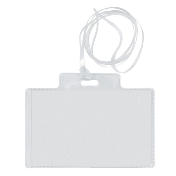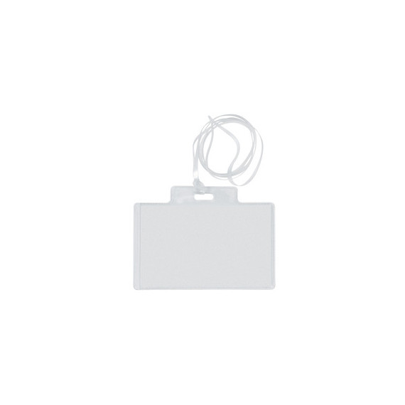 Porta nomi in PVC trasparente, alto spessore, completi di cordoncini in plastica e cartoncini. I cordoncini sono a norme di sicurezza anti soffocamento. Adatti a congressi, riunioni, visite guidate. Inserimento del cartoncino dal lato corto. Formato 95x60mm.