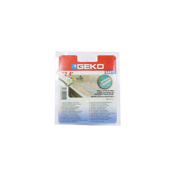 Sigillante adesivo SANY - per doccia e lavabi - 4 cm x 2,4 m - PIB - bianco - Geko