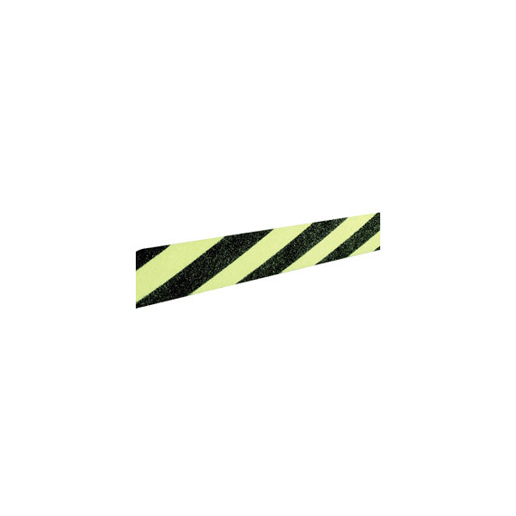 Striscia giallo/nera per segnalazione antiscivolo, in policarbonato autoadesivo fotoluminescente. Indicata per la segnalazione da pavimento e/o scale in aree di produzione e magazzini. Dimensioni: 50x800mm.