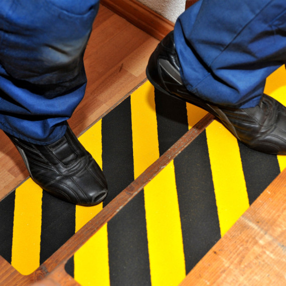 STRISCIA ANTISCIVOLO In robusto PVC, adatta anche a superfici irregolari. Perfetta tenuta nel tempo, parte superiore abrasiva antiscivolo. Resistente all’acqua, allo sporco, agli agenti pulenti e a temperature da -30° a +160°. Resistenza antiscivolo R13 secondo la normativa DIN 51130. Alta resistenza al fuoco grazie alla parte inferiore in alluminio - grado 8 nella classificazione CAA FAA.Dimensioni: 610x150mm.