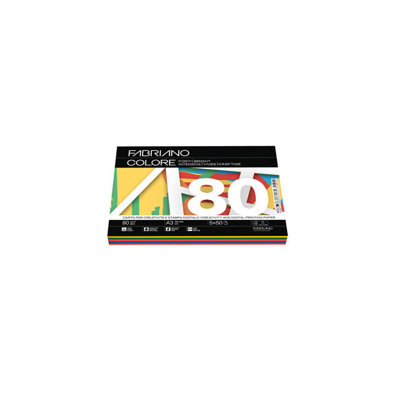 Carta Fabriano Colore - A3 - 80 gr - mix 5 colori forti - Fabriano - conf. 250 fogli